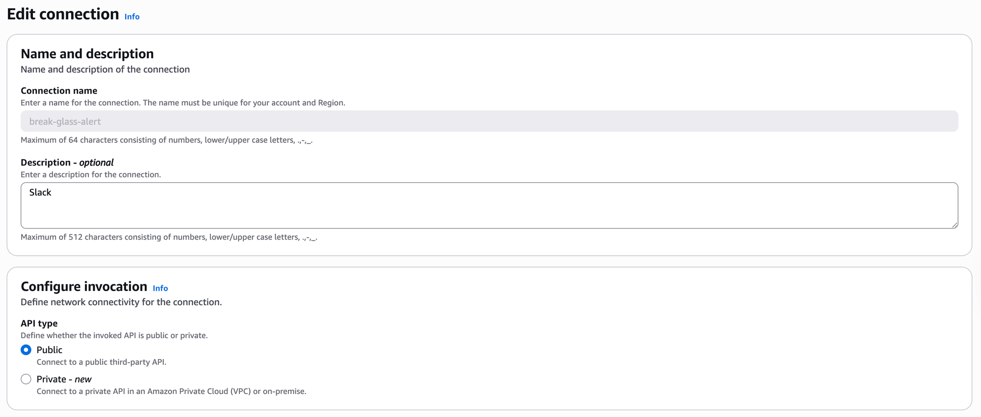 - Create Eventbridge Connection to Slack API