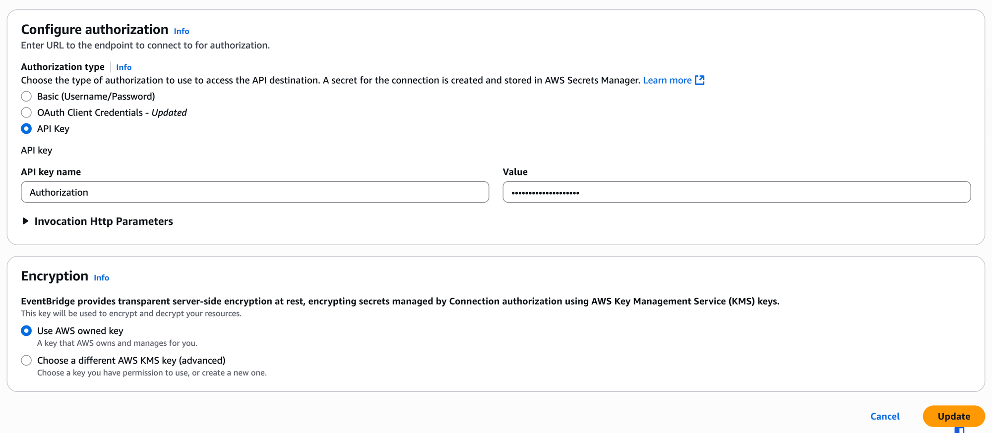It will automatically match the authorization method configuration in EventBridge Connection.