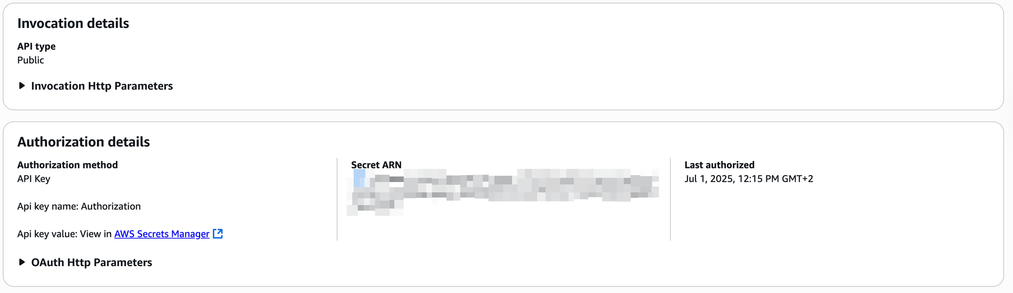 key use Slack Bot Token. Eventbridge will store this key in AWS Secrets Manager.